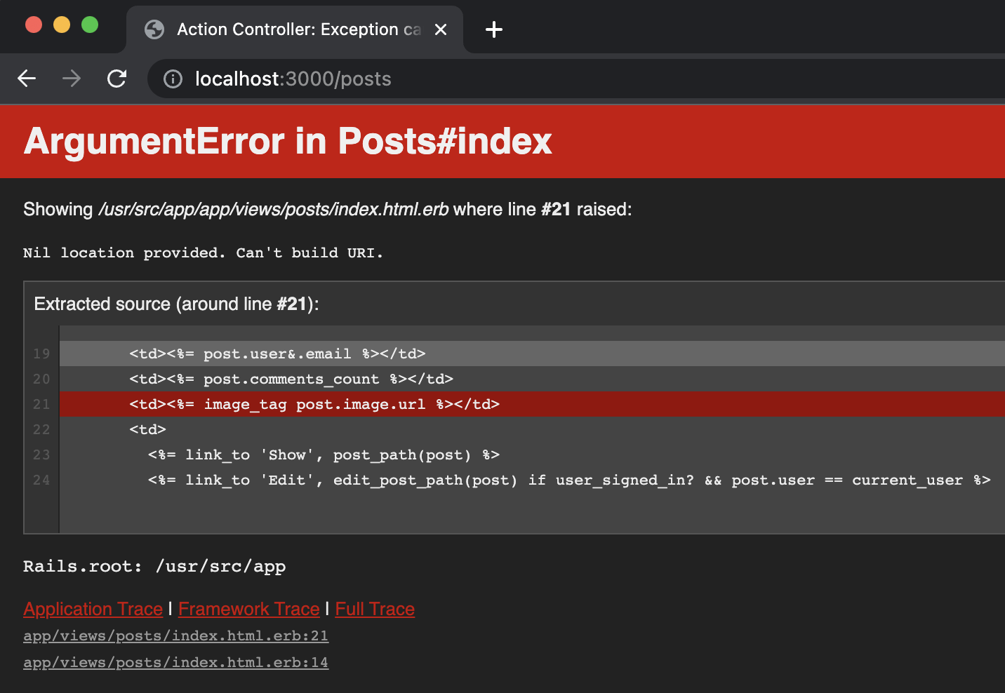 image_tagmethod, we must include a condition (if post.image.present?) that checks whether the image exists. Otherwise, an error will occur if the post does not have an image since you are giving a nil url onimage_tagmethod.